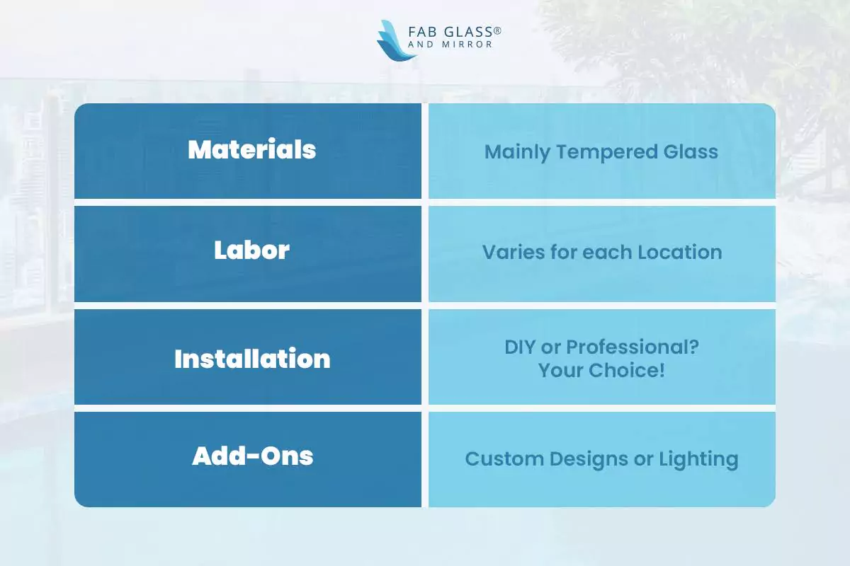 Several elements contribute to the overall GLASS DECK RAILING COST. Here’s a detailed look at each component: