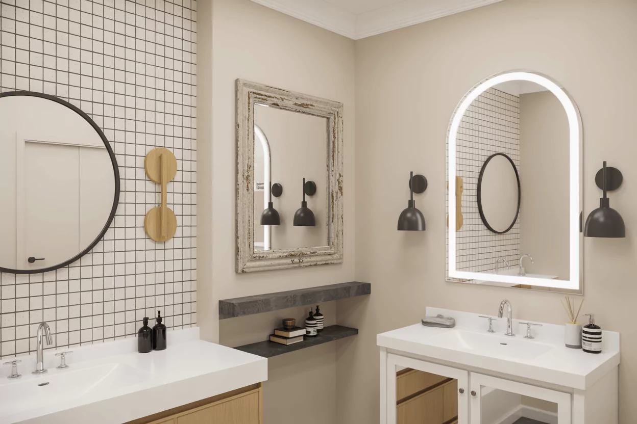 - Integrated (Lighted Bathroom Mirrors): Seamless, tech-savvy, and sleek.