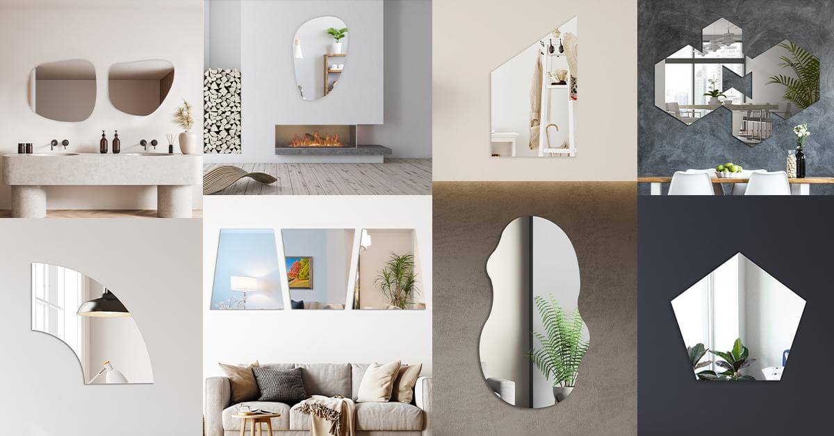 They introduce an element of surprise and personality to a space. Designers often use irregular mirrors to play with light and reflection that adds depth and character to a room. With irregular mirrors, you can create one-of-a-kind focal points. Like other types of mirrors, you can install them in a wide range of spaces, such as living rooms, dining rooms, bedrooms, and bathrooms.