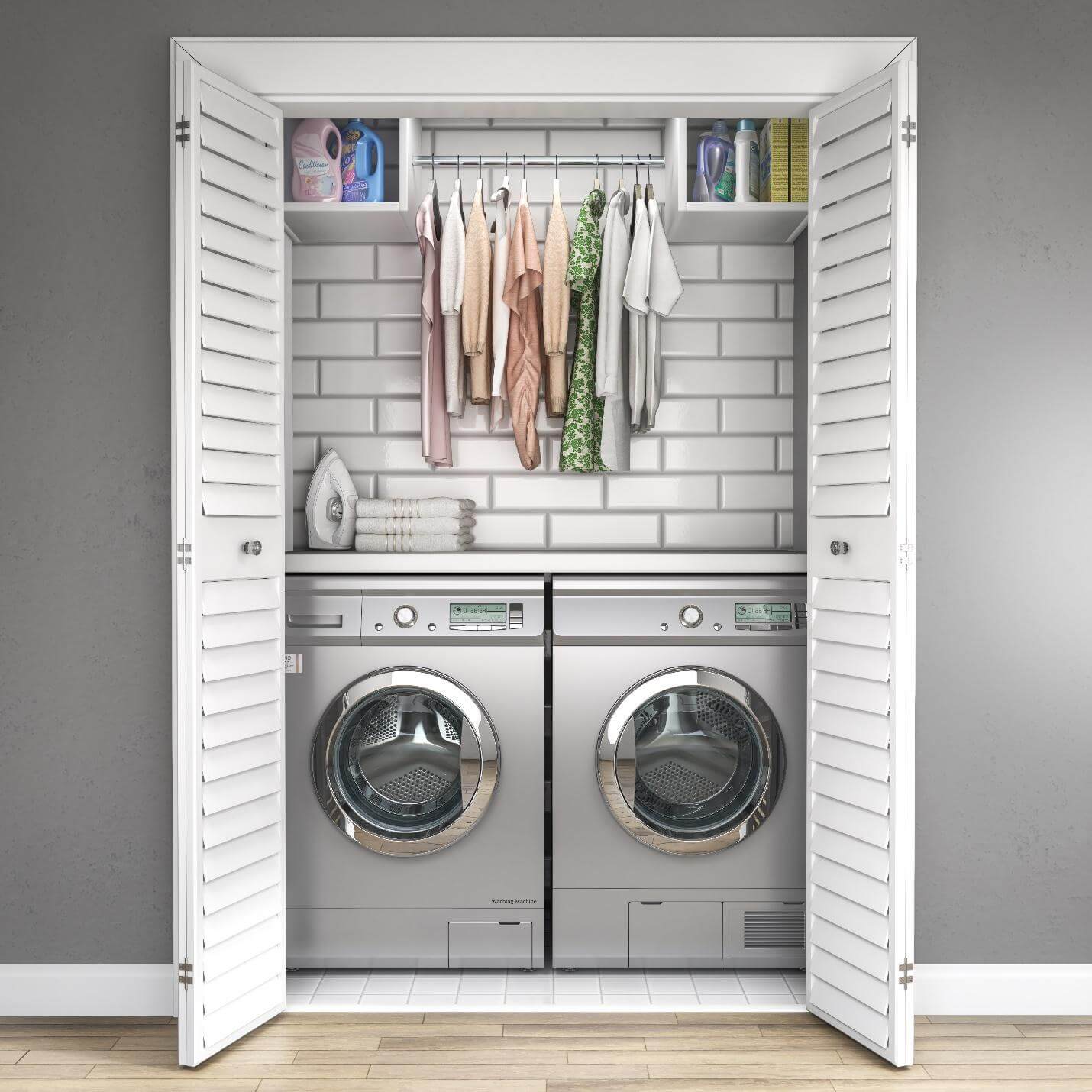 Therefore, it is a good idea to choose a closet door for your laundry. In this regard, you can choose any type of closet door. For example, glass closet doors might be the best pick here since they are fully customizable.