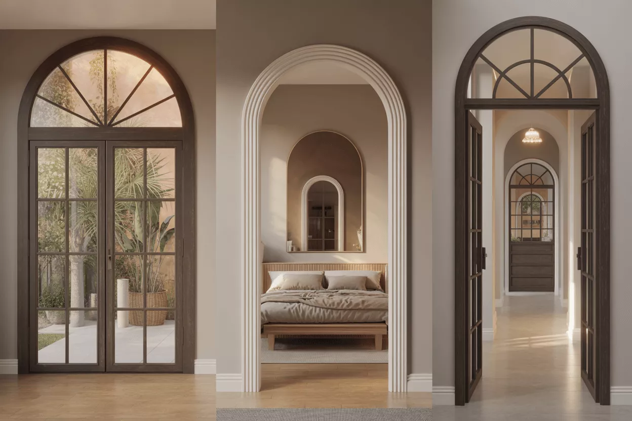 The curved edge draws the eye upward, creating a sense of height and openness. It works beautifully when aiming for a soft yet structured form. This shape adds historical charm and is commonly paired with natural materials like wood or wrought iron.