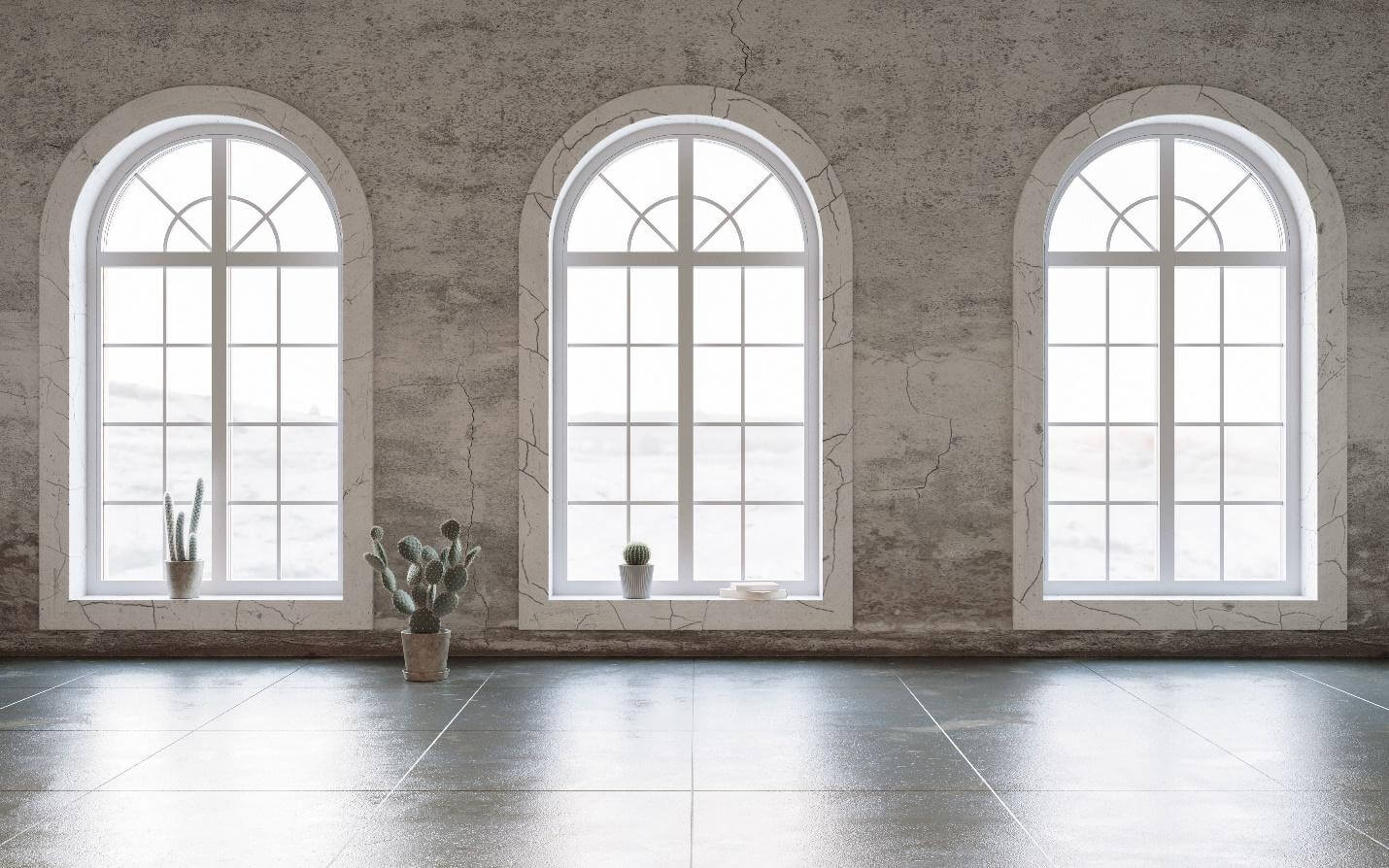 Arched windows feature a geometric window topped with a semi-circular window frame. The unique construction of the arched windows makes them a fascinating design element. Arched windows are mostly used to add a novel feeling of royalty to the building structure.